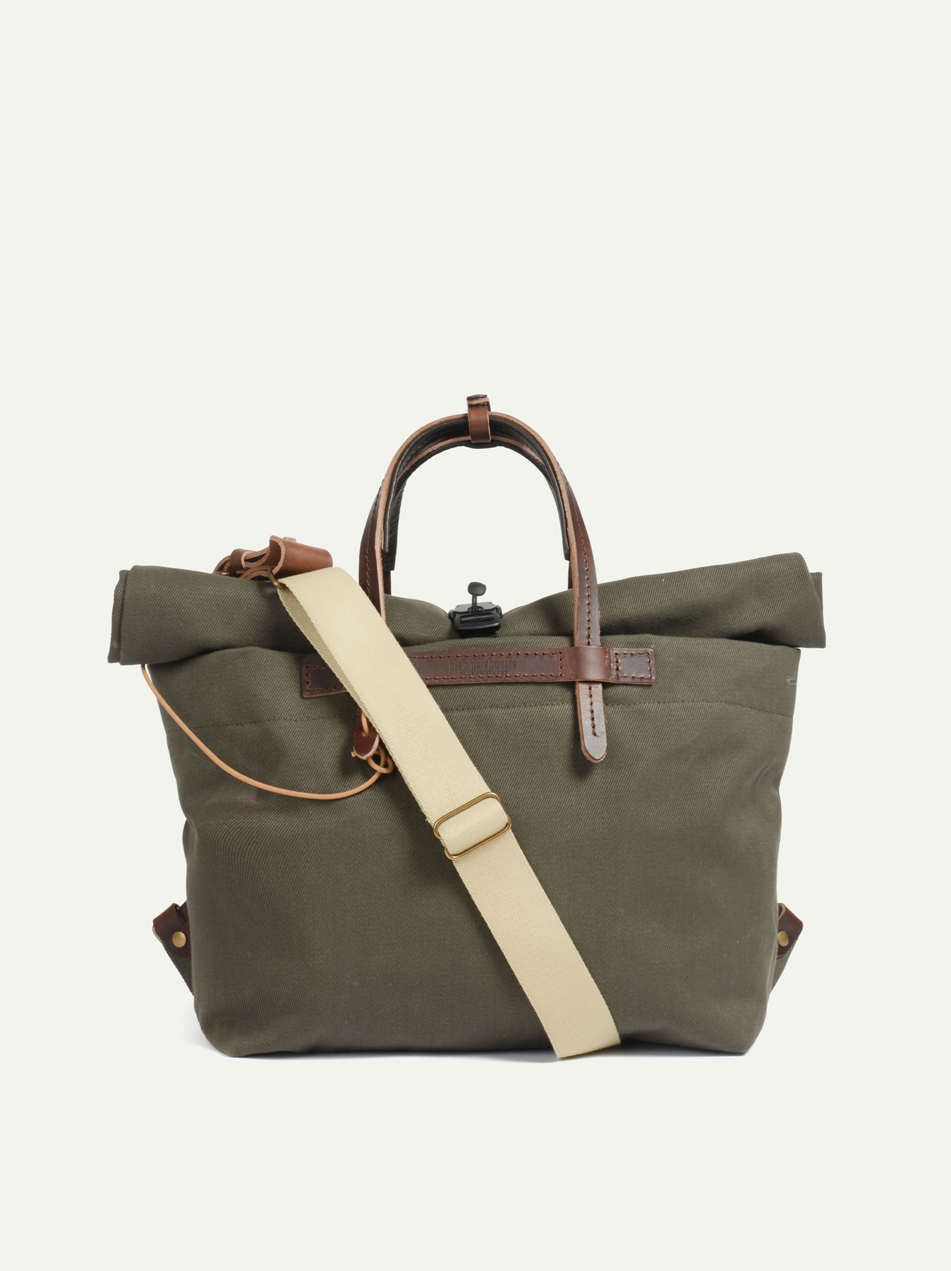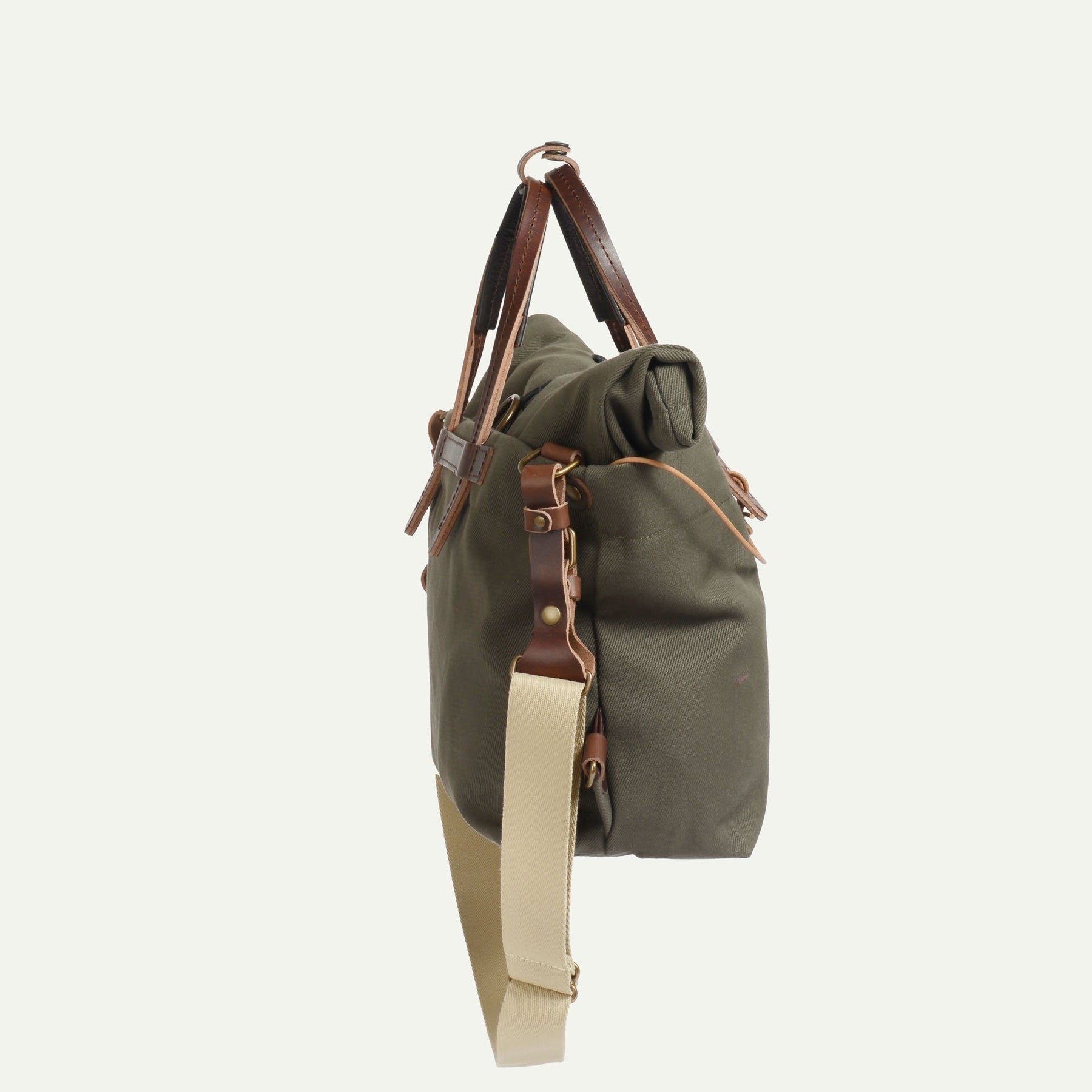 The Business Woody is made from British Millerain cotton serge canvas (590 g/m²), renowned for its durability and resistance to the weather. This high-quality canvas provides complete protection for your belongings, with a stylish weave that is soft to the touch. The vegetable-tanned leather details add a touch of class while strengthening the bag.