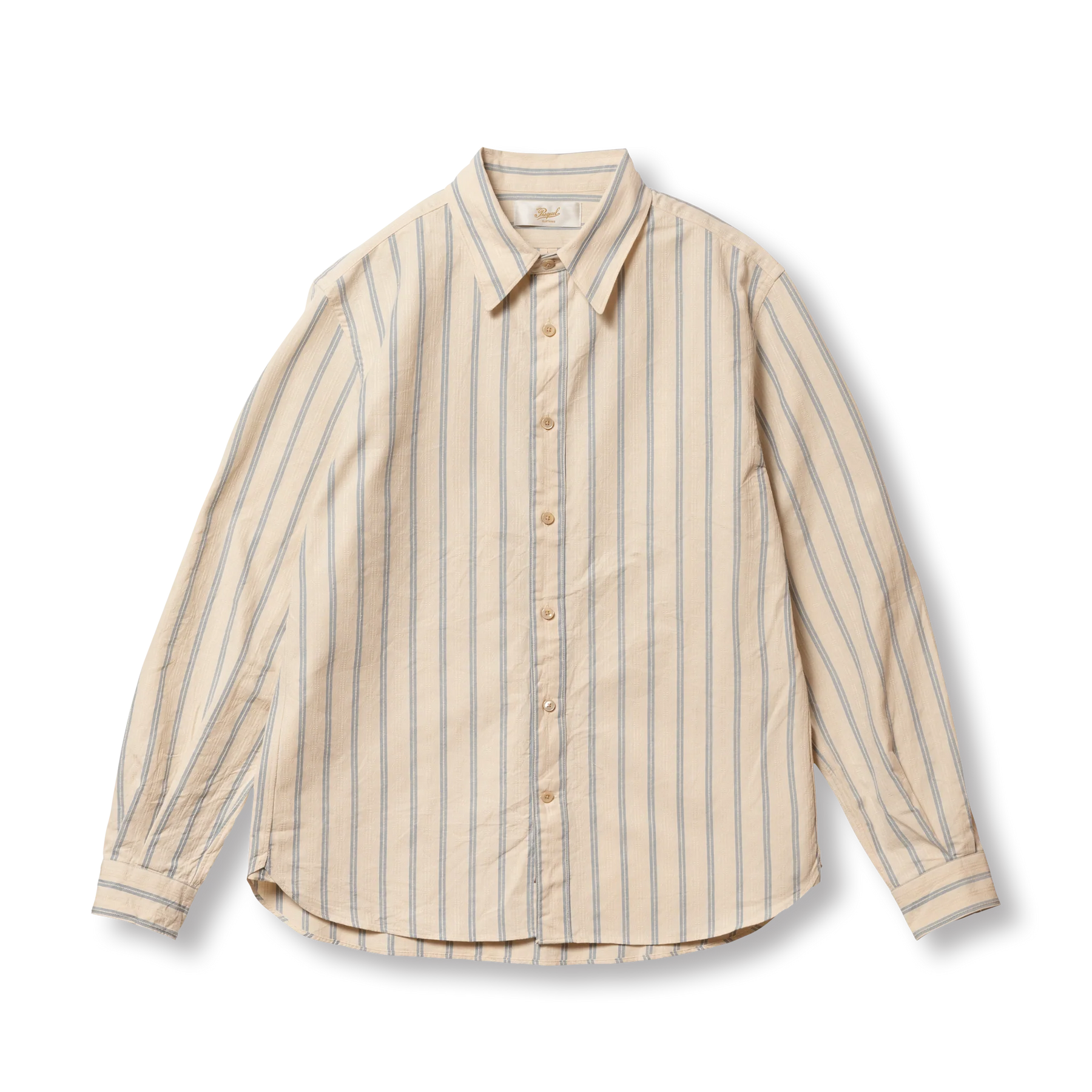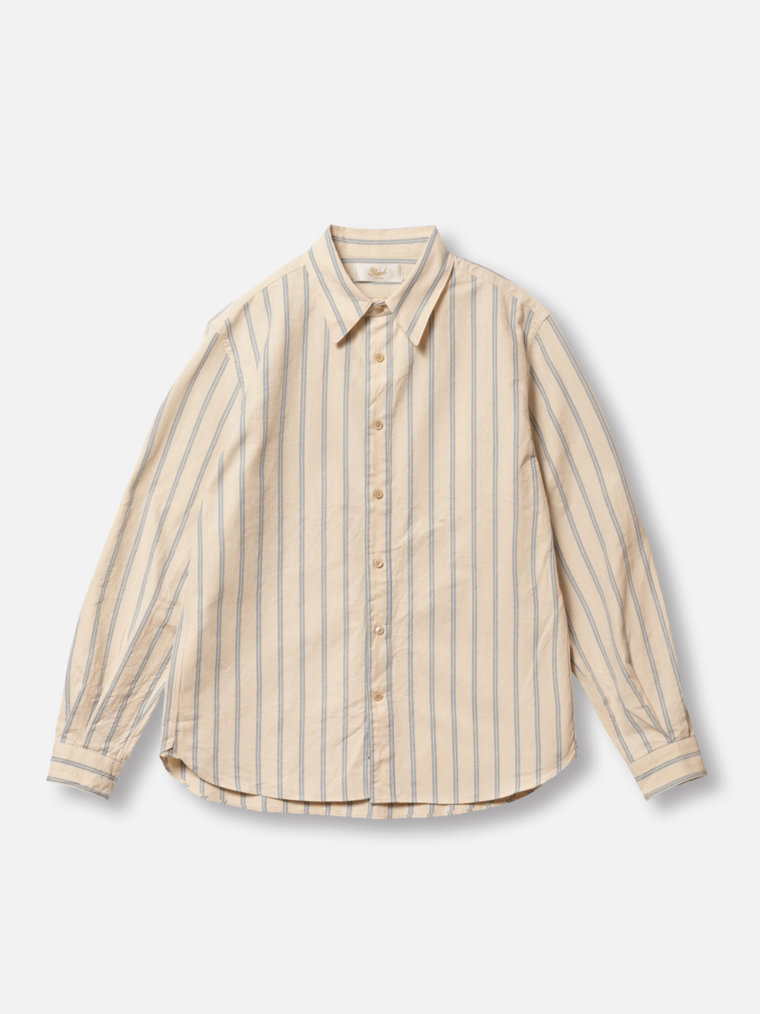 Featuring a bold wide-stripe pattern, this shirt offers a contemporary interpretation of an early 20th-century classic. Its clean, elegant silhouette integrates effortlessly into everyday wardrobes. Thoughtful details elevate the design, including natural shell buttons that add a refined, subtle sheen. Balancing heritage inspiration with modern sophistication, this piece works just as well for special occasions as it does for daily wear.