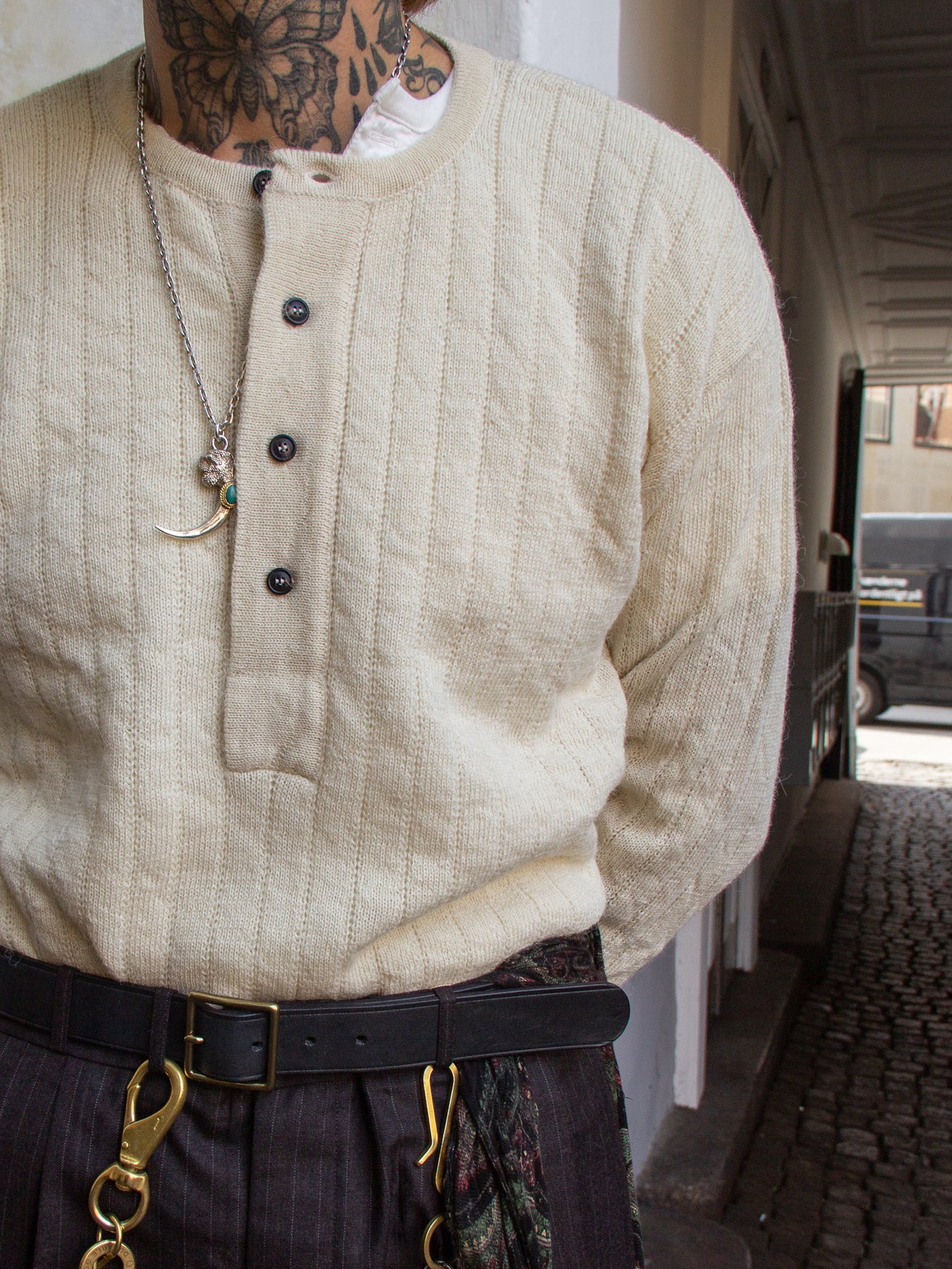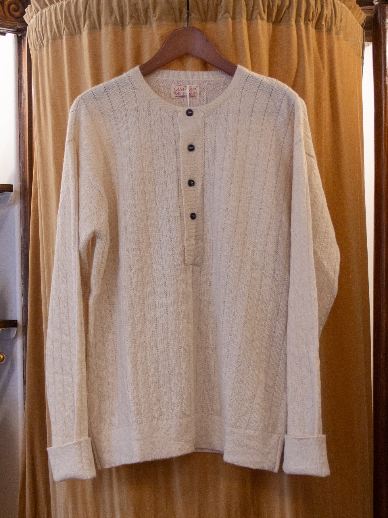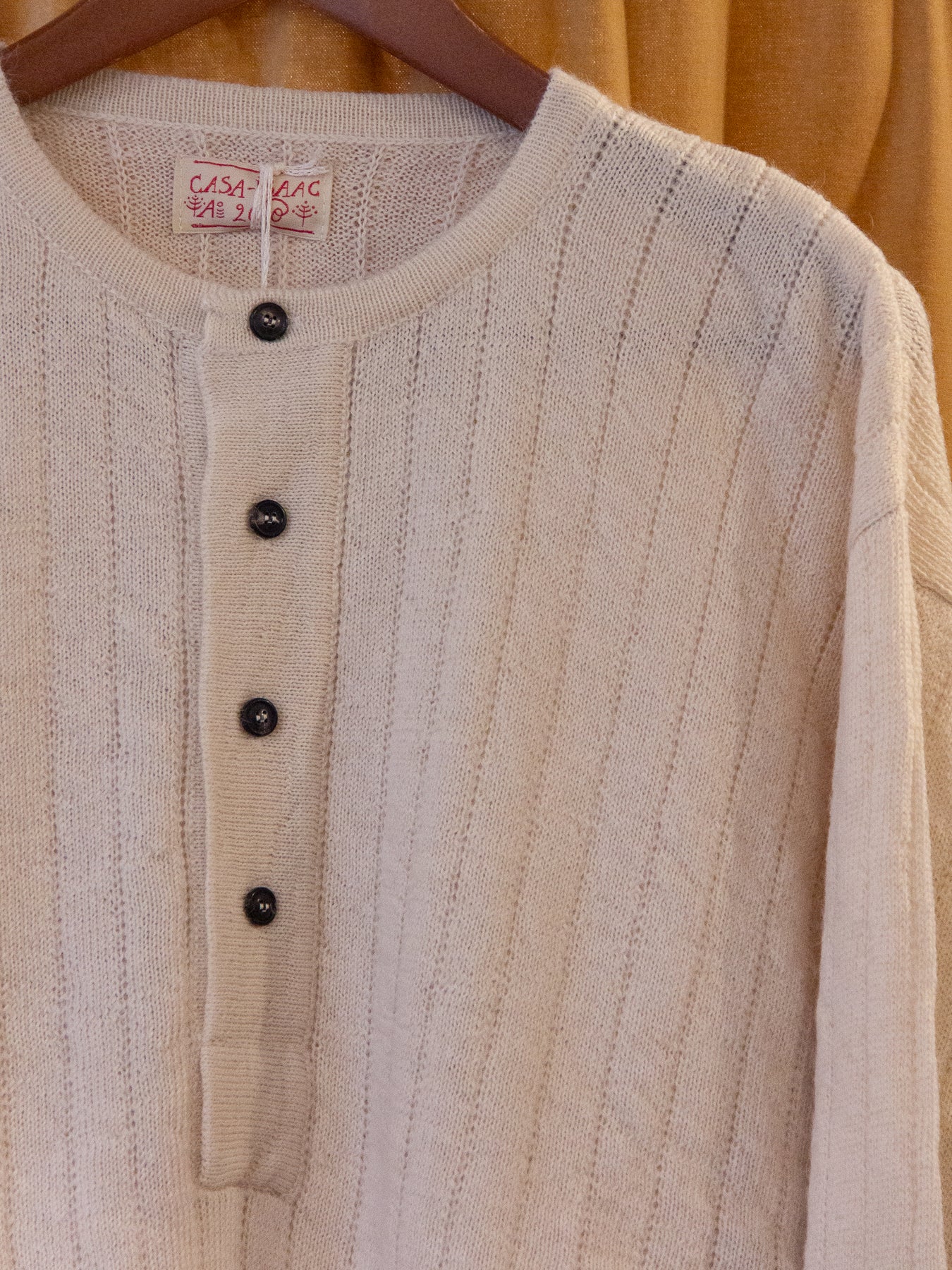 We're happy to offer the new luxurious henley from knitwear specialists G.R.P. crafted in 50% alpaca/ 50% merino.