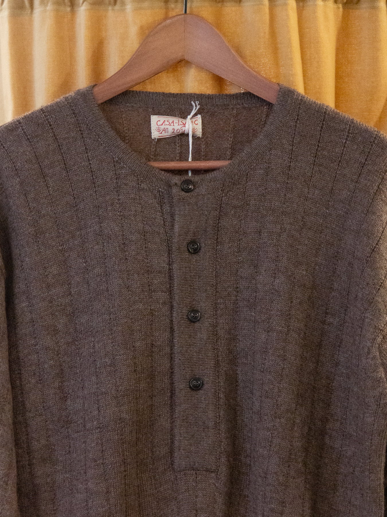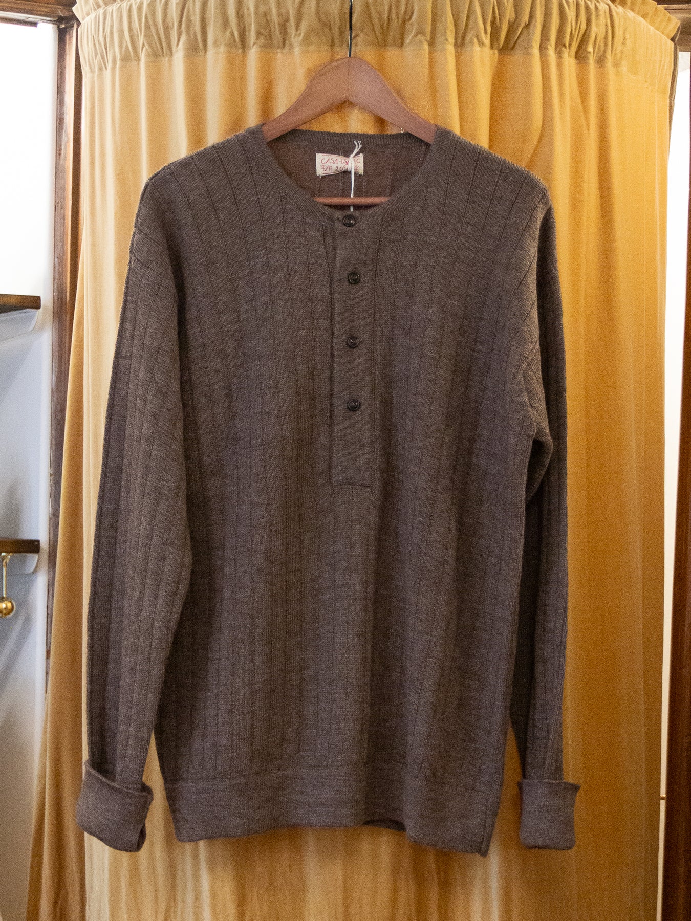 We're happy to offer the new luxurious henley from knitwear specialists G.R.P. crafted in 50% alpaca/ 50% merino.
