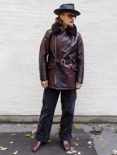 Y'2, YK-05 40's German Motorcycle Belted Half Jacket, Black/ Brown Hand Dyed Horse