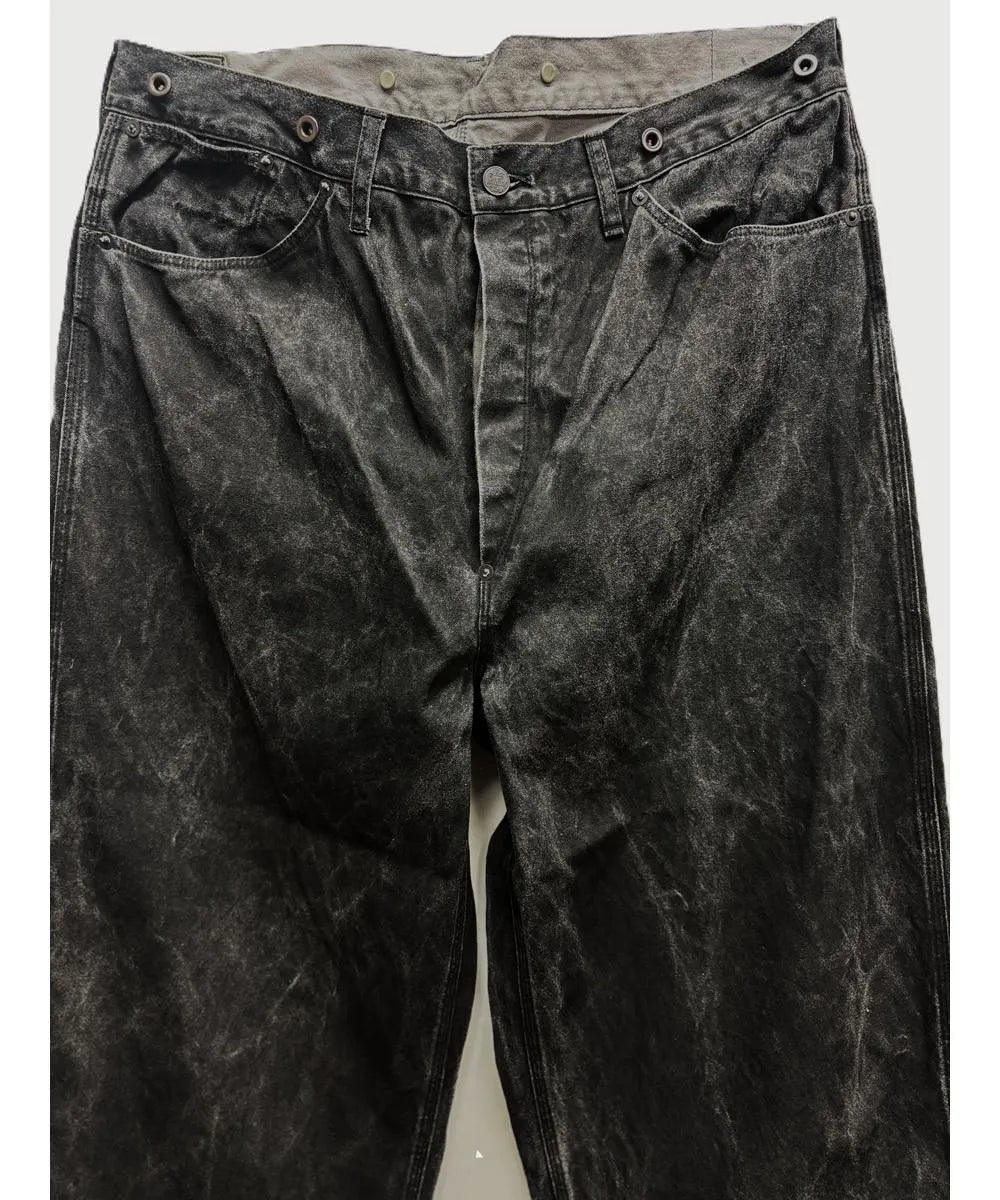 Crafted from a unique Sumimole (ink-dyed) cotton canvas, these jeans are designed to age beautifully, developing a rich and highly individual patina over time. Inspired by early workwear, the silhouette is straight, wide, and high-waisted, staying true to classic vintage proportions.