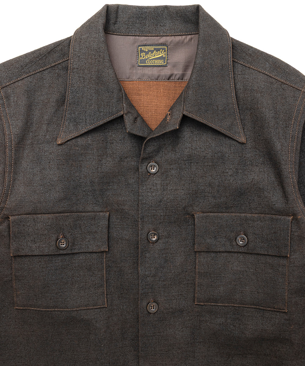 Belafonte Ragtime Clothing, Slub Yarn Open Collar Shirt, 29-8,Doromole Brown