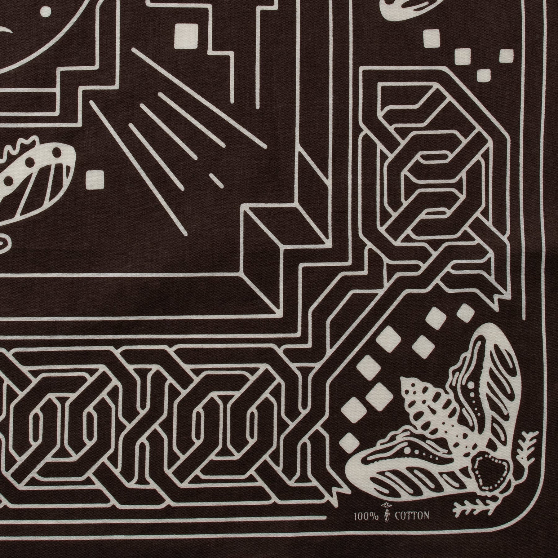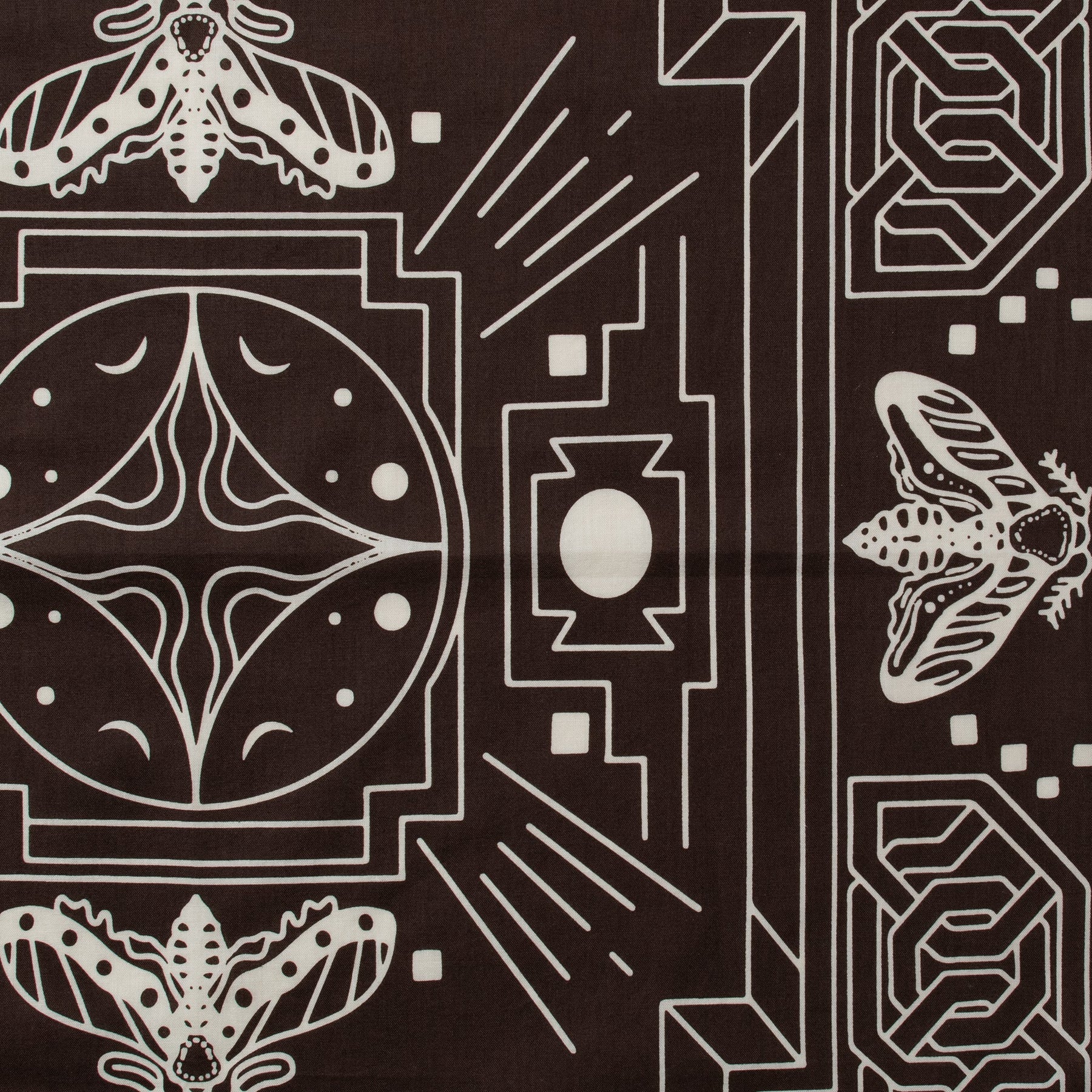 Drawing inspiration from vintage Turkey Red bandannas the outside border features an intricate crochet design, moths are partnered with a confetti pattern.