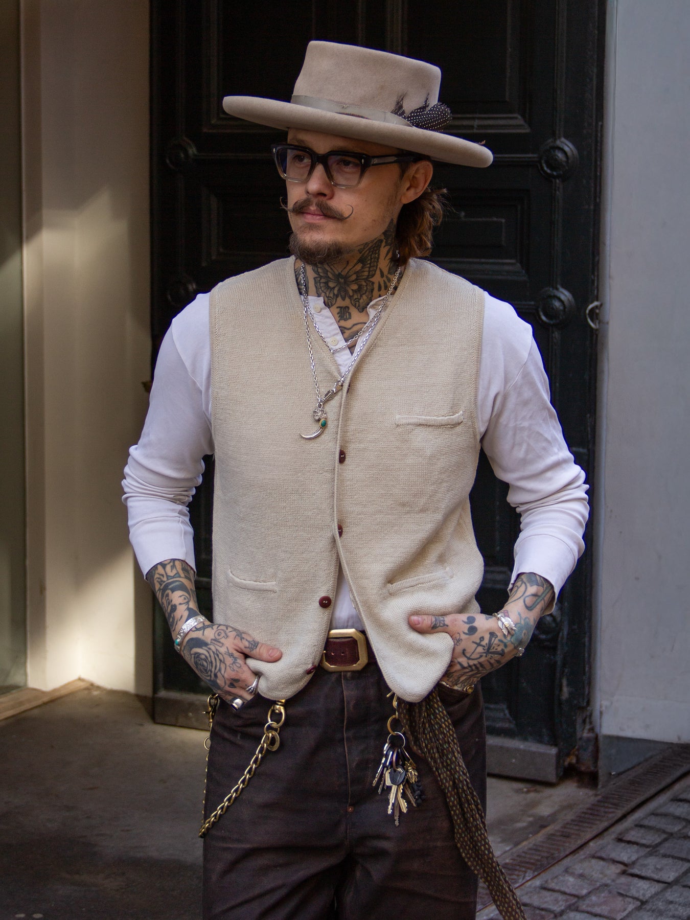 With its subtle texture and timeless silhouette, the Buttons Vest sits perfectly between heritage workwear and classic menswear, making it a versatile piece for relaxed tailoring or vintage-inspired outfits.