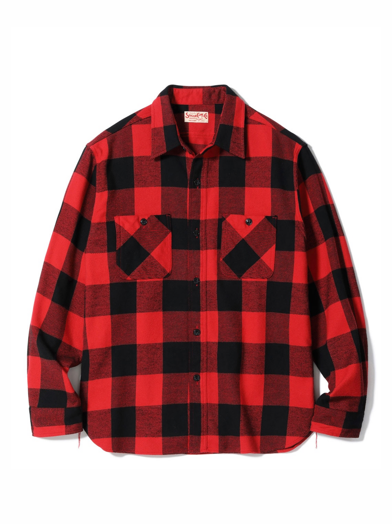 Based on vintage items stored by Sugar Cane, this classic check shirt recreates the details of the 1950s and 1960s, including twin-needle chain stitching and the specifications of each part. This buffalo check shirt was released by selecting the size and color of the pattern from several vintage shirts.